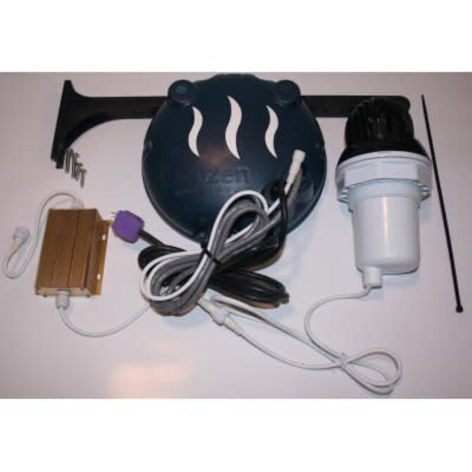 The kit includes the Onzen generator, which uses electrolysis to produce sanitizer from Dead Sea salts, and the necessary fittings to install it into the hot tub's plumbing.