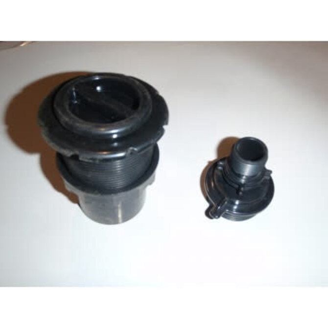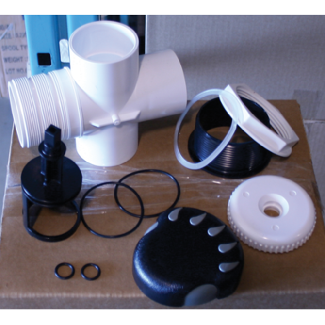 Used to distribute water from a 1-inch spigot (SPG) connection to four 3/8-inch barbed (BARB) ports that connect to the jet lines. The manifold has a 1-inch spigot (SPG) end, which is the same diameter as 1-inch pipe and glues inside a 1-inch slip (socket