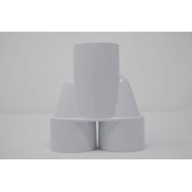 directs the flow of water from a main 2-inch pipe to two smaller branches that feed a set of SDS Jets