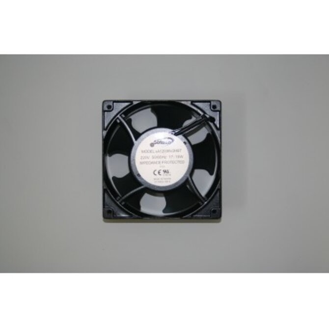 The fan is controlled by the hot tub's system, turning on to regulate the internal temperature of the equipment bay, especially during long filter cycles or when the spa is covered.