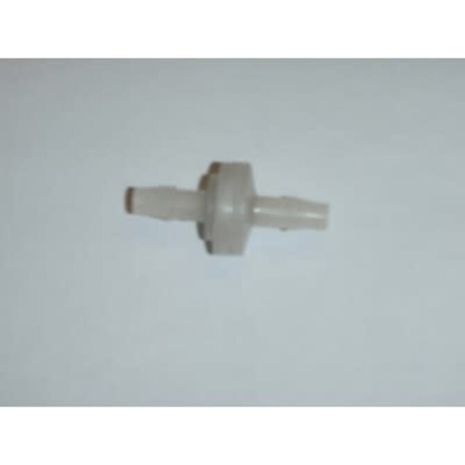 a small, inline, non-return valve used to protect the ozonator from water backflow. It has 1/4" barbed fittings to accept 1/4" ozone tubing. A failing or "frozen" check valve is one of the most common causes of ozonator problems