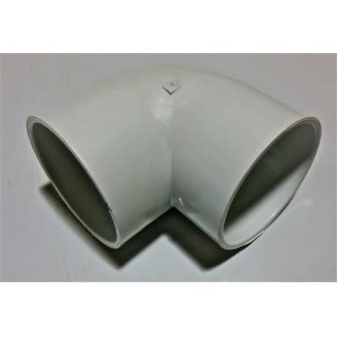 a 90-degree PVC elbow with socket connections on both ends, designed for the spa's 4-inch plumbing.
